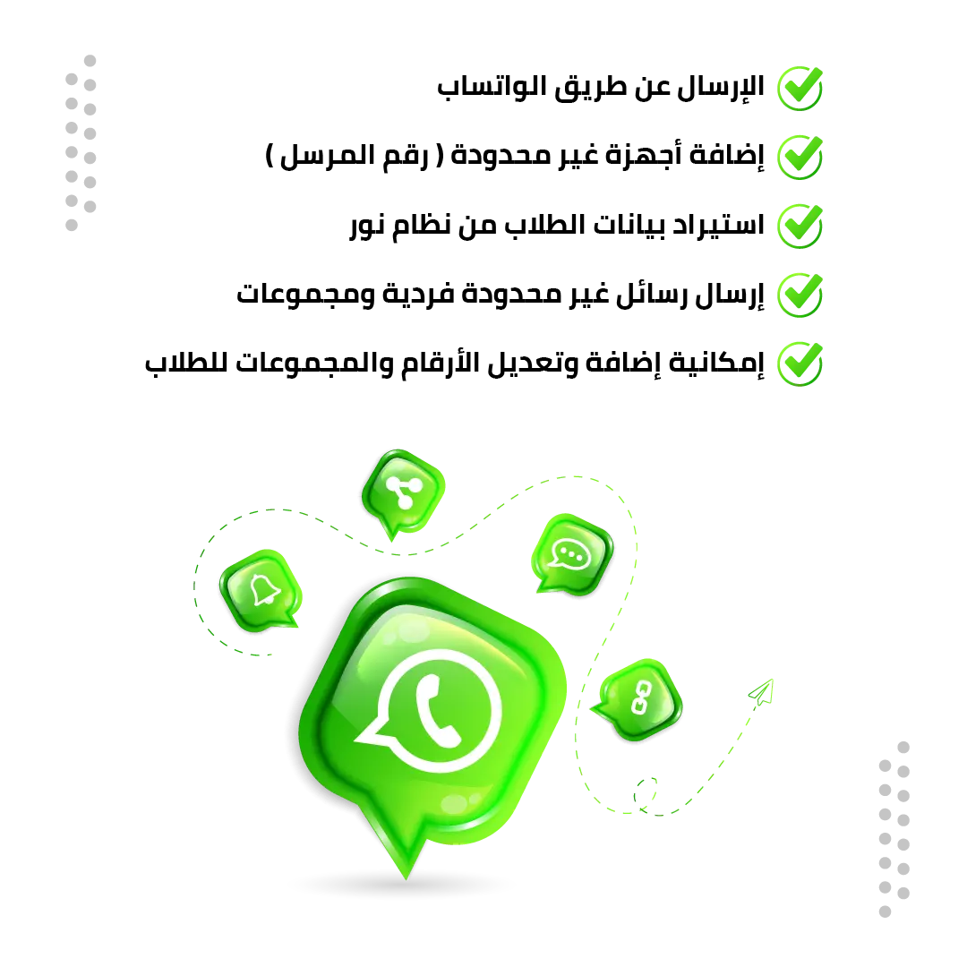 من إرسال رسائل واتساب وارسال الشهادات وغيرها من الخدمات